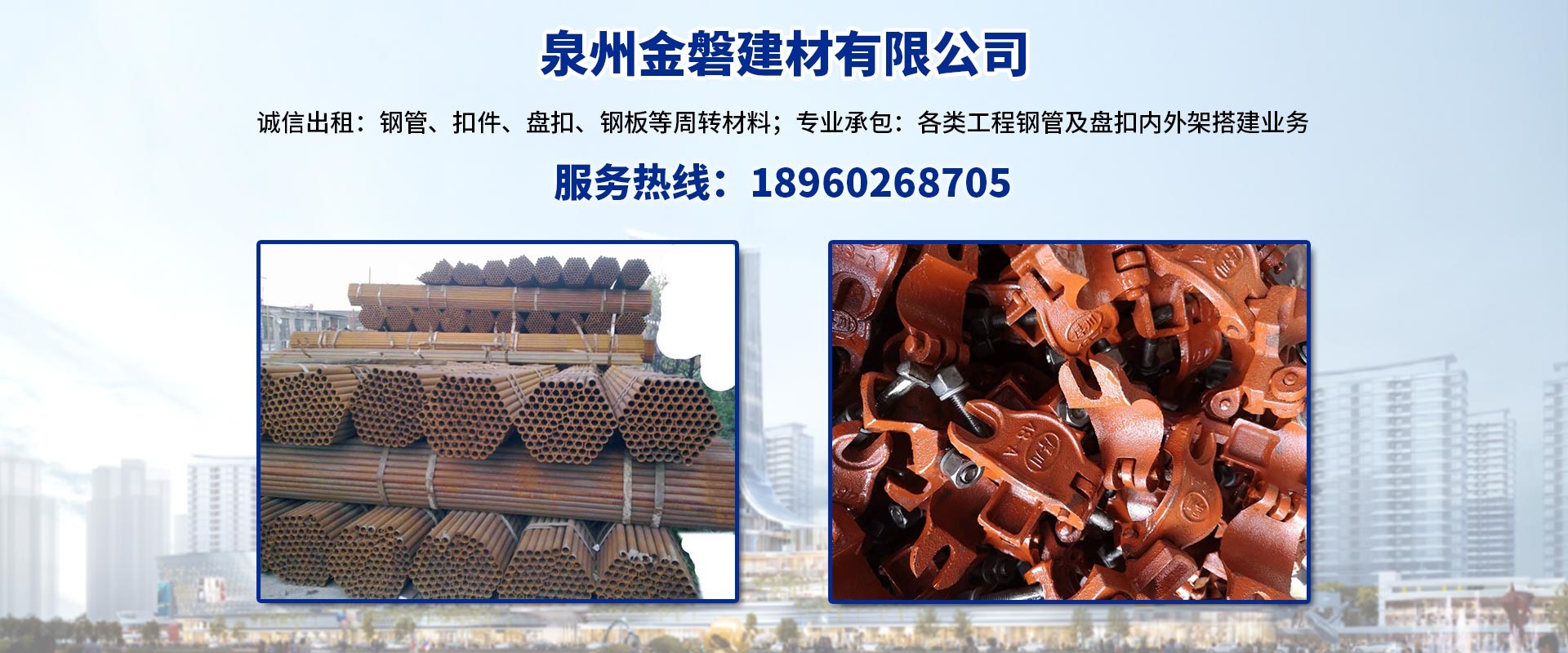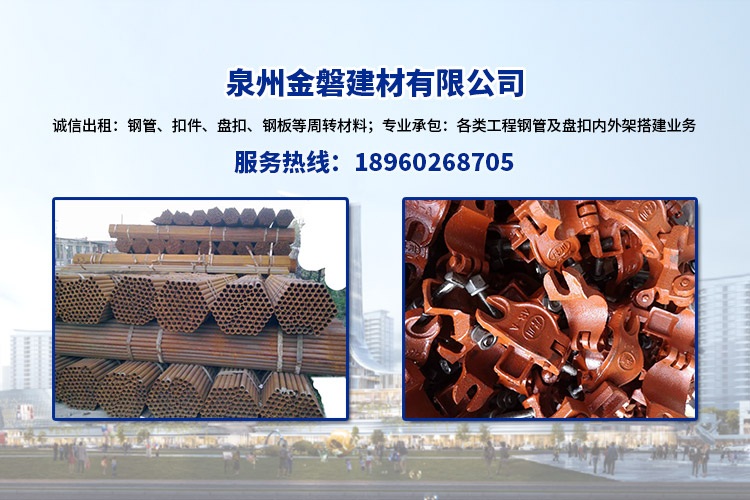 公司專(zhuān)業(yè)出租鋼管、扣件、盤(pán)扣、鋼板等周轉(zhuǎn)材料,承接各類(lèi)工程鋼管及盤(pán)扣內(nèi)外架搭建業(yè)務(wù),各類(lèi)材料體量充足,品類(lèi)齊全,保證每個(gè)項(xiàng)目的正常供應(yīng),參與多項(xiàng)省、市重點(diǎn)建設(shè)工程,以一流的工作質(zhì)量和周到的服務(wù)在客戶(hù)中建立起良好的信譽(yù),現(xiàn)與中鐵建設(shè)、中天建設(shè)、閩南建工、福建九鼎建設(shè)、永泰一建等大型建筑企業(yè)建立長(zhǎng)期合作關(guān)系。